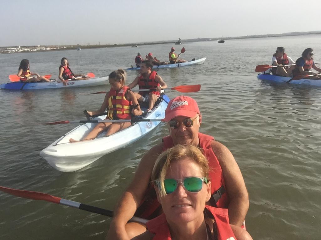 El sábado 3 de septiembre llegaba una de las actividades más esperadas de nuestro programa, el II Descenso del Río Piedras en Kayak. Lejos de la competición, era el turno para disfrutar de la naturaleza en una jornada marcada por el buen clima y la buena compañía. Con salida en el Puerto de El Terrón, la ruta aprovechaba la última hora de bajamar para navegar rumbo a la Flecha de Nueva Umbría. Una parada para tomar un baño en el Océano Atlántico, atravesando las dunas, a la vez que reponer fuerzas. La vuelta a puerto se realizó con la marea parada y esperando que comenzara a llenar. Tras dos horas y media de ruta, y no sin la ayuda de la embarcación de remolque, llegamos de nuevo a El Terrón. Una jornada de deporte en la naturaleza en la que pudimos disfrutar de nuestro entorno y la compañía de nuestros acompañantes.