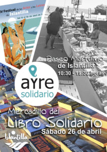 Tras la reciente firma de un convenio de colaboración con la entidad entidad sin ánimo de lucro Ayre Solidario, la Mancomunidad de Islantilla celebrará un Mercadillo de Libro Solidario en el Paseo Marítimo durante la jornada de clausura del festival en el que residentes, visitantes y turistas podrán adquirir a precios populares libros, películas y discos de vinilo, a la vez que colaboran con los proyectos de cooperación internacional en favor de la juventud que Ayre Solidario desarrolla en el norte de África.