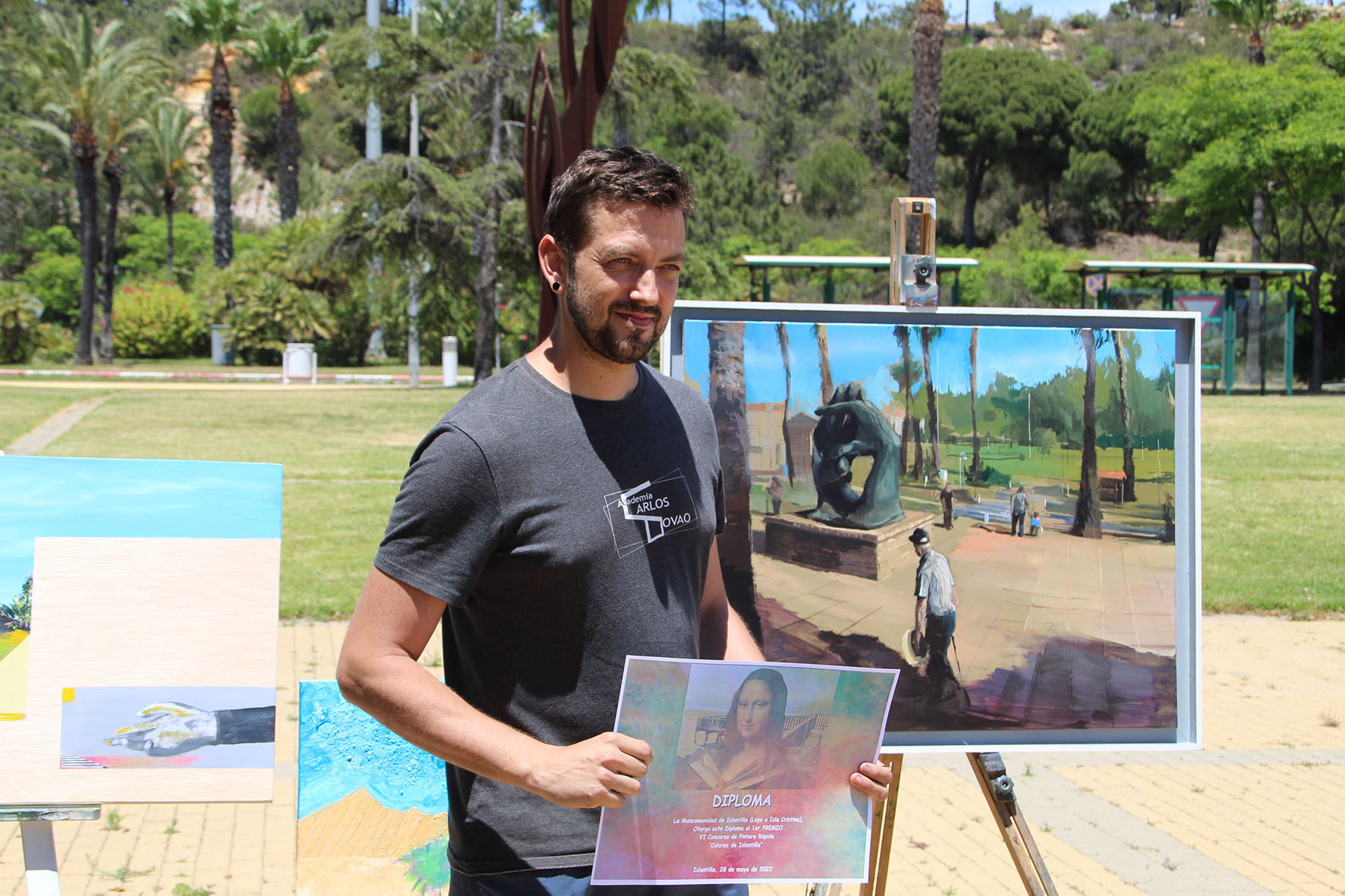 El acto ha contado con la representación institucional del Vicepresidente de la Mancomunidad de Islantilla y Teniente de Alcalde de Lepe, Jesús Toronjo, quien ha celebrado “la gran participación registrada en esta edición, con veintiún artistas noveles y veteranos procedentes de muy distantes lugares, y que con sus obras nos muestran el valor paisajístico de nuestro destino, especialmente de nuestra emblemática Plaza Manuel Camacho, uno de los lugares más reconocidos de Islantilla”.