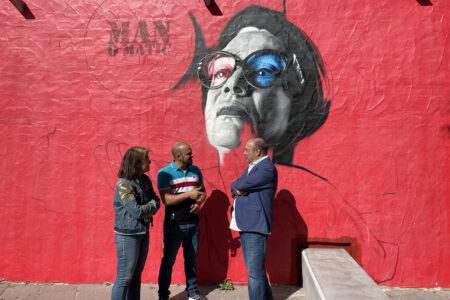 Los responsables institucionales de la Mancomunidad han visitado al creador onubense de arte urbano durante la producción de esta emblemática obra Los responsables institucionales de la Mancomunidad de Islantilla han …